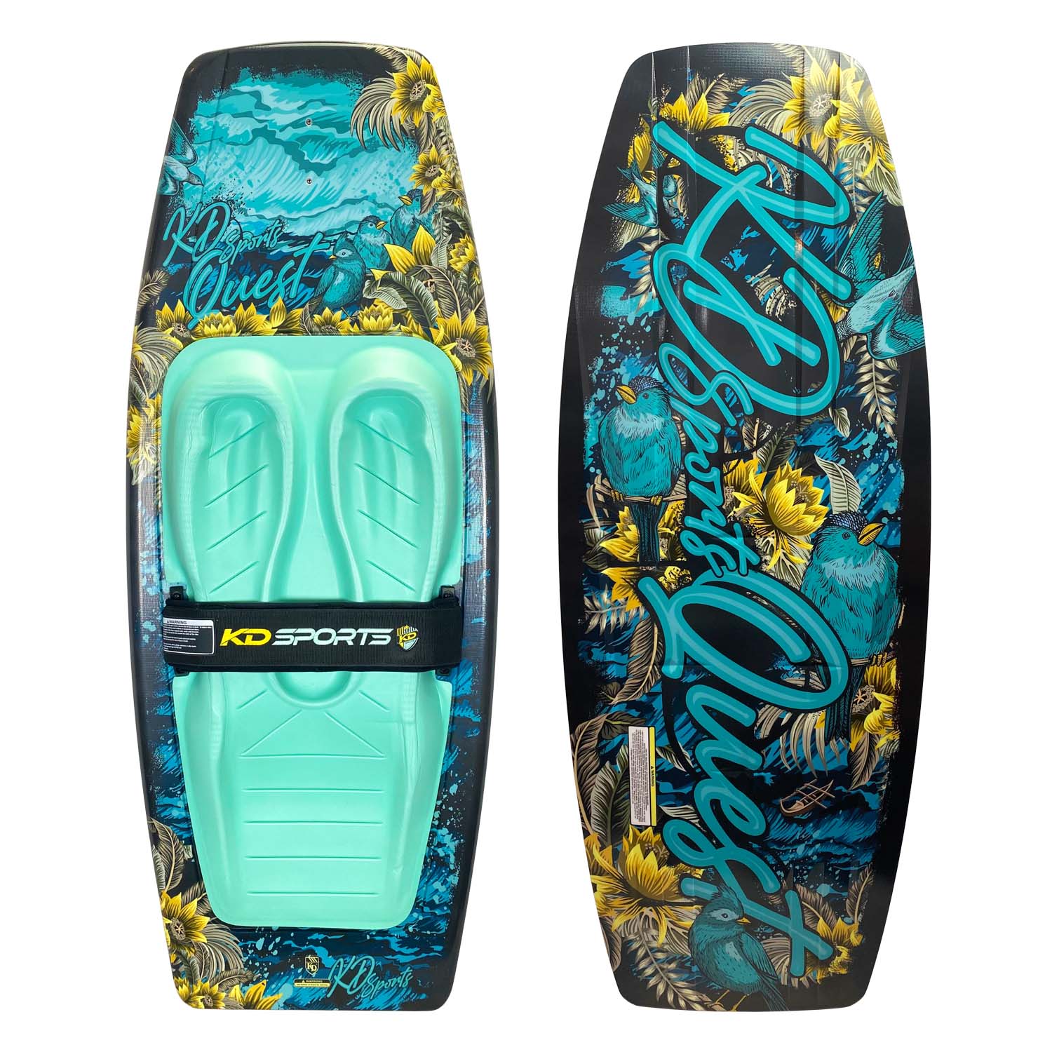 Easy on the eyes and on the body, the KD Quest is the choice for riders who want a great all-round board that’s doesn’t break the bank! Built using cross-woven fiberglass wrapped polyurethane core the KD Quest is an ultralight board that’s uniquely shaped grooves on the boards base allow for aggressive edge transitions without the fear of the board slipping out. Fitted with KD’s upgraded pad with moulded zones for tibia/fibula and a raised zone at the rear to give support under the legs and take pressure off the ankles allowing for cushy landings. The floating soft touch neoprene lined strap allows riders of all sizes to centre the padding for ultimate comfort. It’s fitted with the two inserts in the nose allowing fitment of the signature KD Handle Hook as an optional extra! KD Sports have set out on a Quest to build a utility kneeboard that doesn’t only suit the experienced riders but is user friendly for less experienced as well.